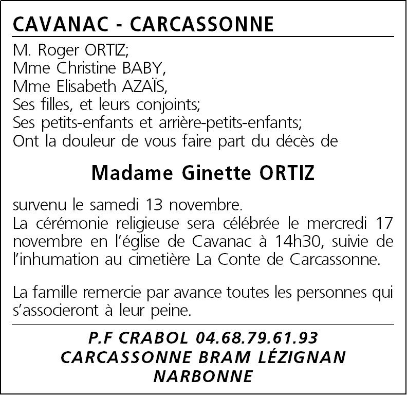 Epouse de Monsieur Roger ORTIZ