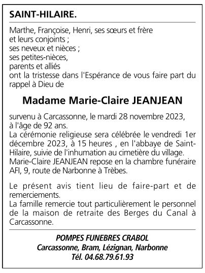 Madame Marie-claire JEANJEAN