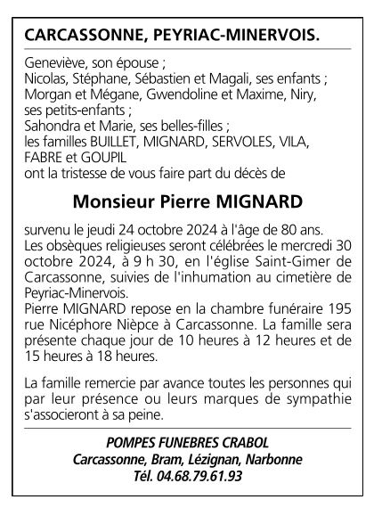 Décédé à Carcassonne (11000, France) le jeudi 24 octobre 2024 à l'âge de 80 ans