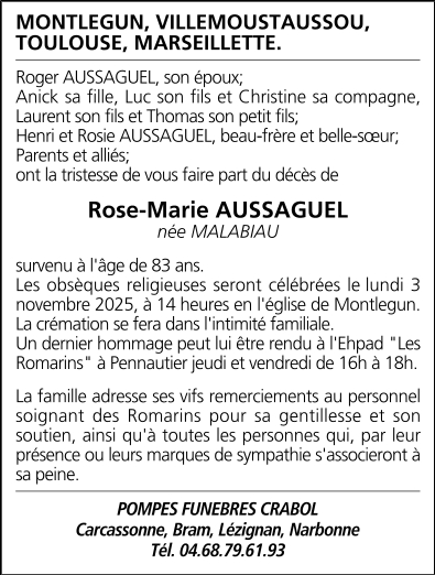 Madame Rose-Marie AUSSAGUEL née MALABIAU