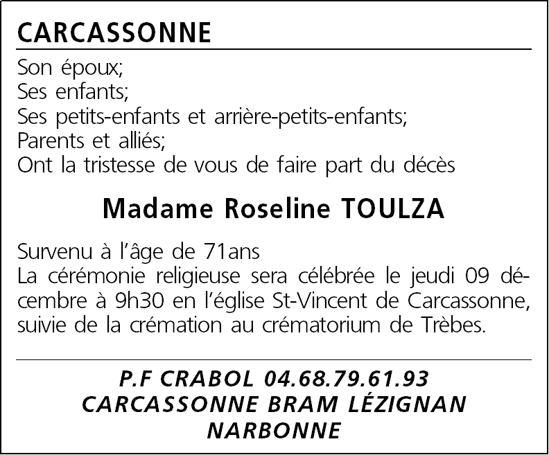 Epouse de Monsieur Joseph TOULZA